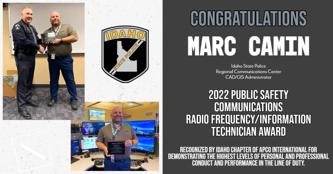 Marc Camin won the 2022 Public Safety Communications Radio Frequency/Information Technician award for Idaho!